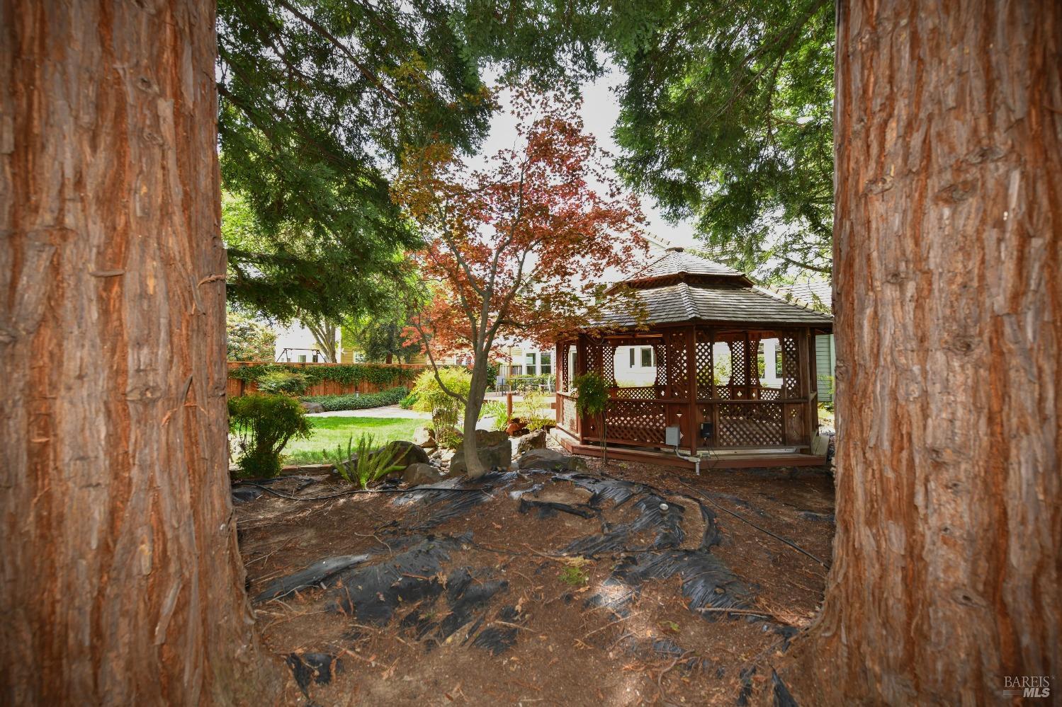 Museum Quality Meets Napa Valley Comfort. This turnkey home is a masterpiece of thoughtful design and luxury living. Step into a radiant great room with soaring ceilings, a sleek fireplace, a glass-framed staircase that makes a stunning architectural statement. Light pours through expansive windows, illuminating every curated detail. The sitting room invites relaxation with its own fireplace, built-in coffee bar, wine storage, and oversized windows all equipped with electric shades for effortless ambiance. The kitchen is a chef's dream, outfitted with professional-grade appliances, eye-catching countertops, a walk-in pantry, and clever details like a retractable mixer shelf. The formal dining area, perfectly positioned to overlook a serene redwood grove just beyond the windows. The spacious primary suite is a true retreat, featuring a walk-in closet and a spa-inspired bathroom with a mother-of-pearl accent wall, towel warmer, and a deep soaking tub. This home is crafted with precision from window shapes echoed in tile patterns and light fixtures, to custom drawer pulls and robe hooks. All cabinetry is toe-lit, and mirrors throughout the home are backlit. The back yard is an oasis with a large comfortable deck, room for the gardener and a gazebo for year round outdoor living.